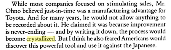What is interesting is that the Ohno quote is not “Do not have a method”, just not to codify it. In fact Ohno also said: